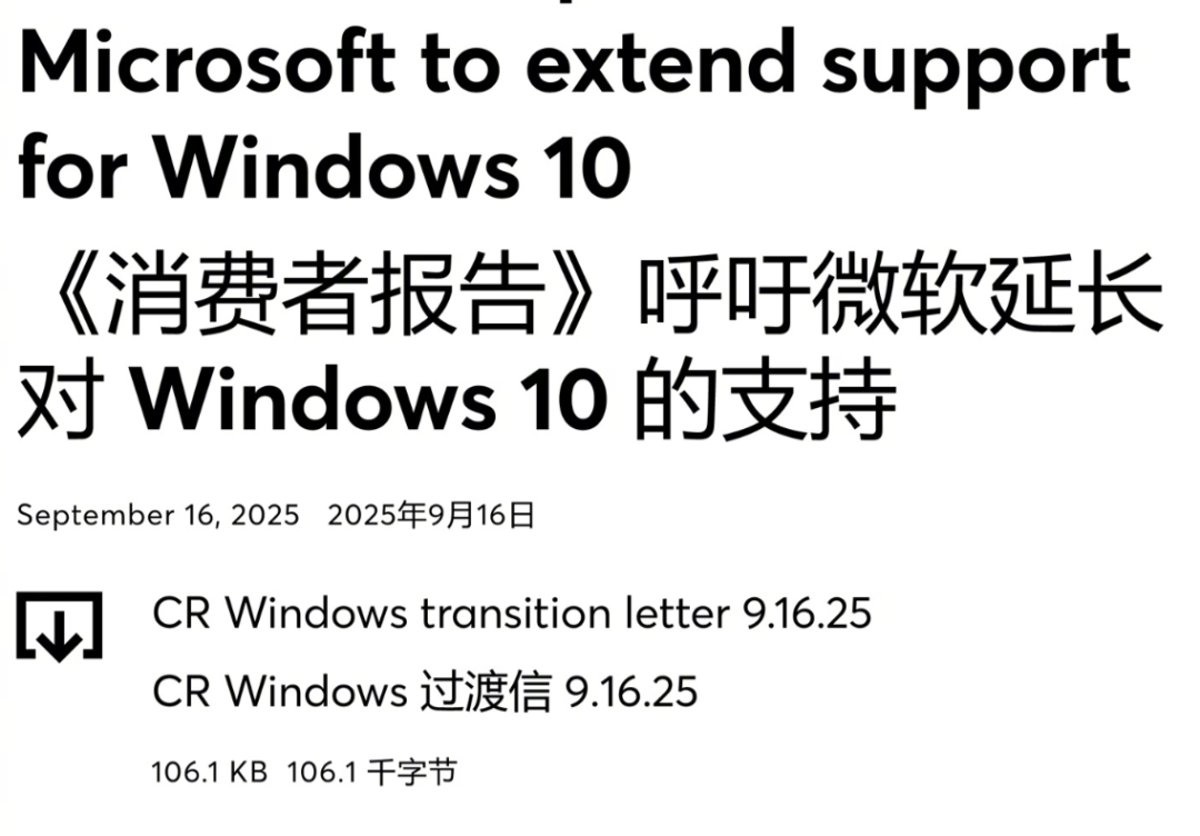 科技媒体 The Verge 今日发文称,美国消费者权益组织“消费者报告”向微软 CEO 发出公开信,要求延长 Windows 10 系统的免费安全更新期限。