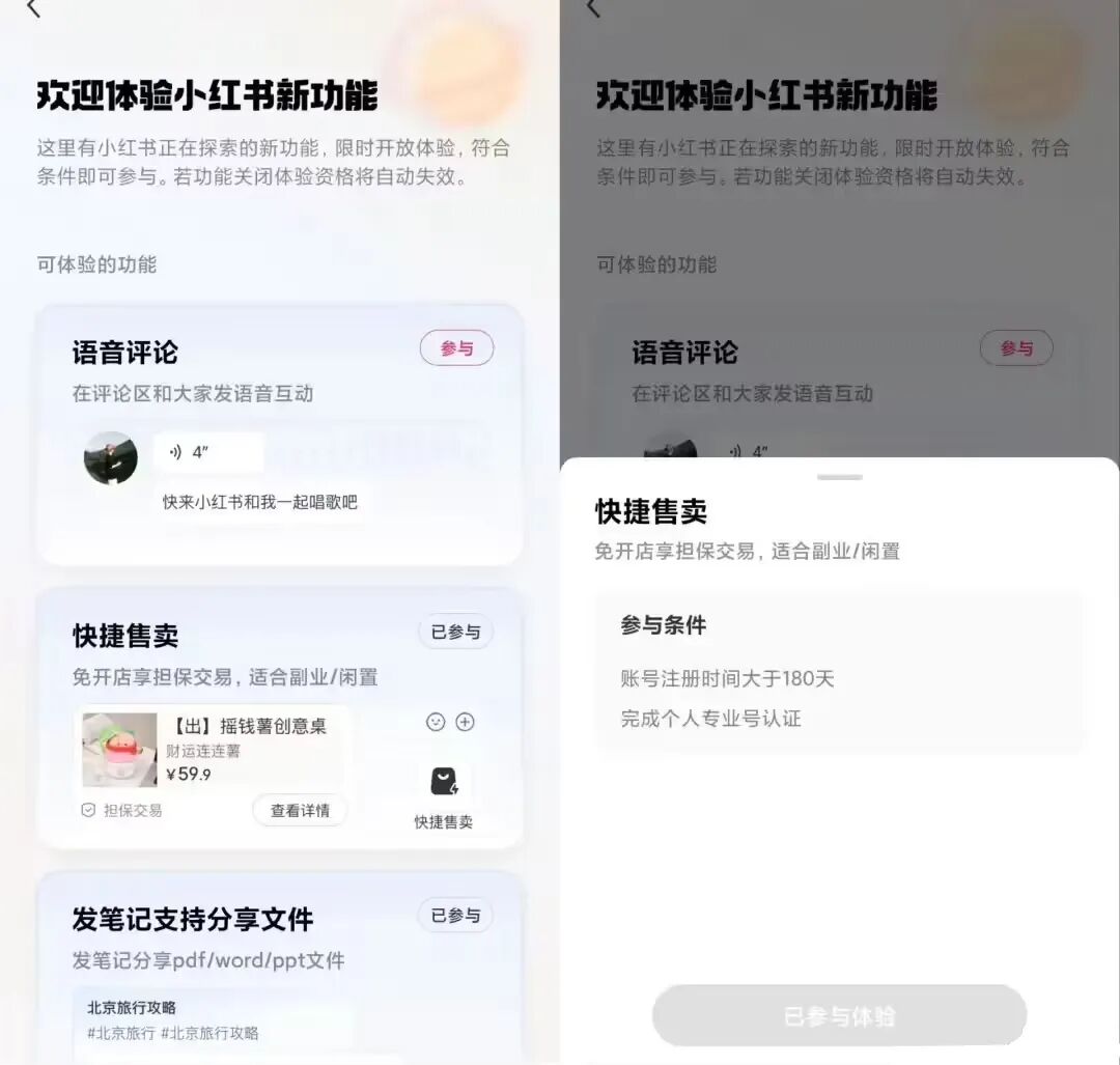据了解,目前小红书正在内测二手电商“快捷售卖”新功能,用户可以在笔记下方直接挂上想卖的闲置商品链接,或者在跟别人聊天的时候,直接把商品卡片发过去。