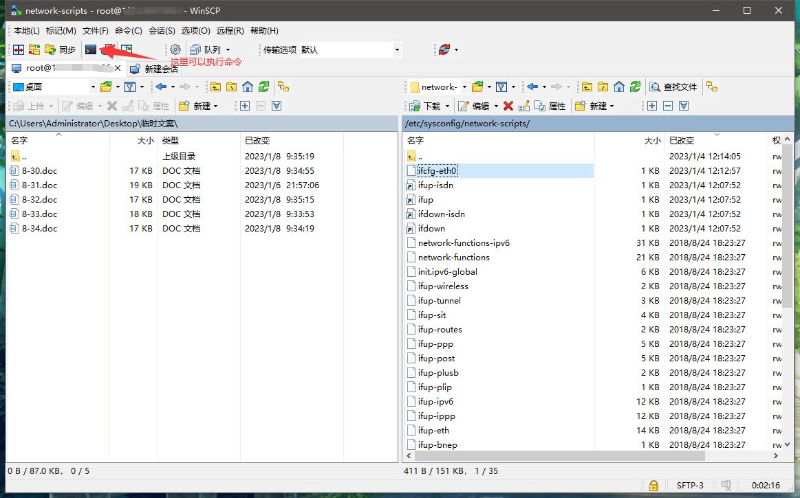 对命令和SSH不熟悉的朋友,可以使用“WINSCP”软件连接,类似于FTP管理,进入后按路径找到网卡配置文件,下载,修改,上传,再重启网卡。