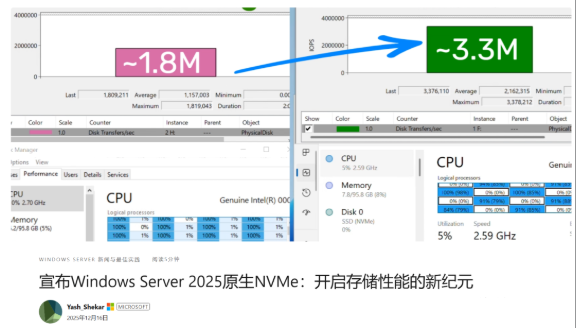 微软宣布 Windows Server 2025 正式引入原生 NVMe 存储支持,打破了长达十多年的架构限制,彻底告别传统的 SCSI 兼容模式!