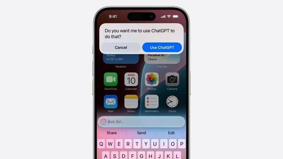 彼时,ChatGPT 是作为 Siri 的“补充知识库”出现的。当 Siri 遇到不懂的问题时,它会停下来问用户:“是否希望用 ChatGPT 来完成这个请求?”